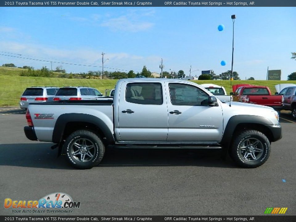 The 2013 Toyota Tacoma. 4x4 Access Cab V6 shown in Silver Streak Mica with available TRD Off-Road Package, accessory front skid plate and black tube steps. 1 See footnote 20 in Disclosures section. ... Retrieve Content